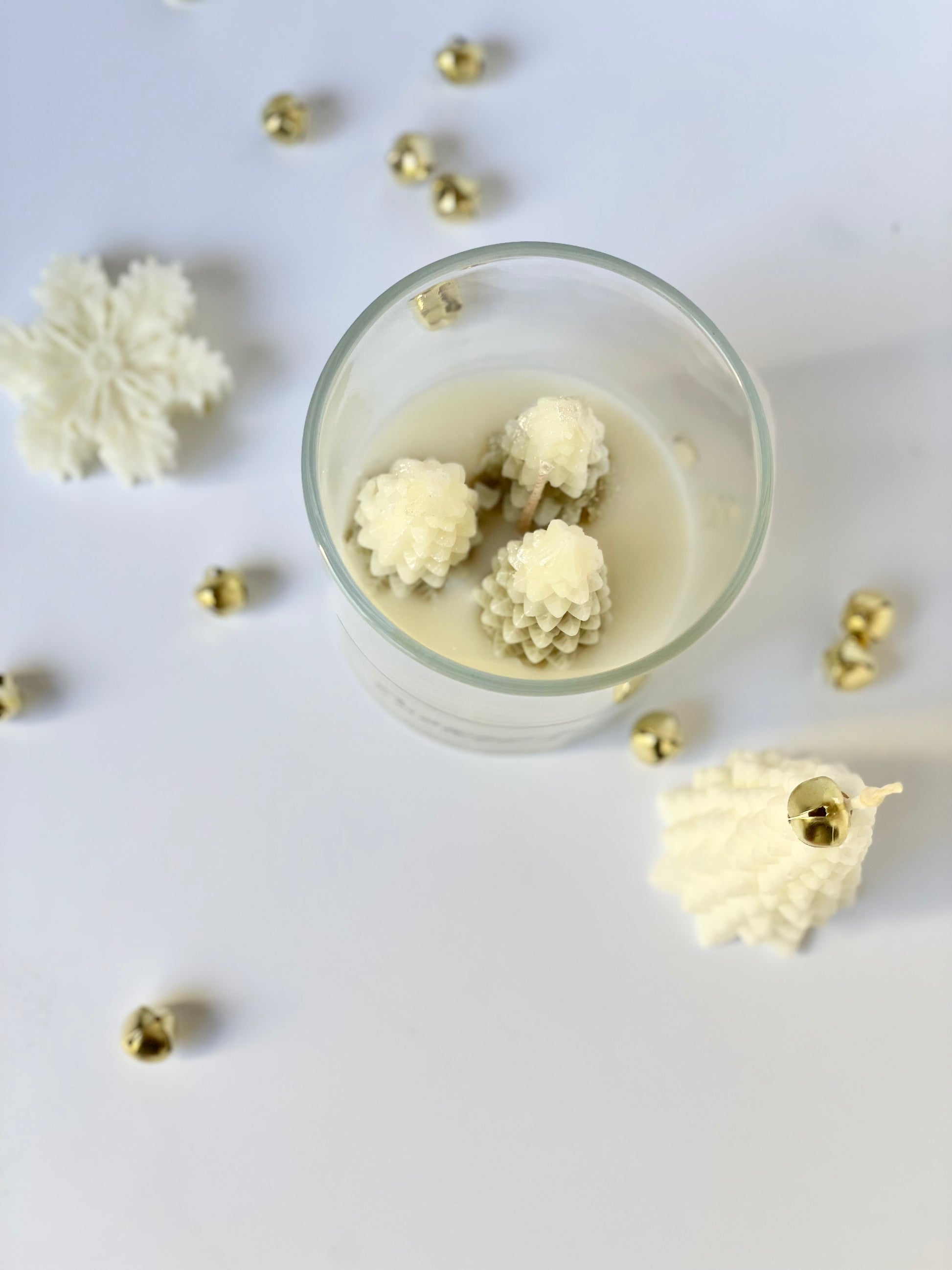 Fresh pine and birchwood awaken the senses, while ripe raspberry adds a delicate, festive sweetness. As amber and musk unfold, they envelop the room in a comforting glow — like being cocooned by the golden hush of falling snow.