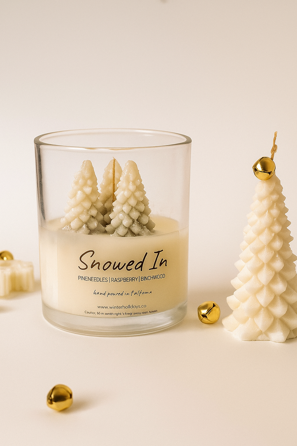 A serene escape wrapped in quiet luxury. Snowed In captures the stillness of a winter morning — where pine branches glisten under soft light, the air is crisp, and warmth radiates from within.